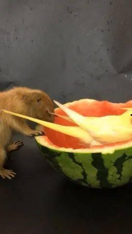 松鼠只顾吃瓜,欢乐时光尽享自然