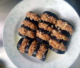 3. 将调好的肉馅填入茄瓜中,使其饱满。